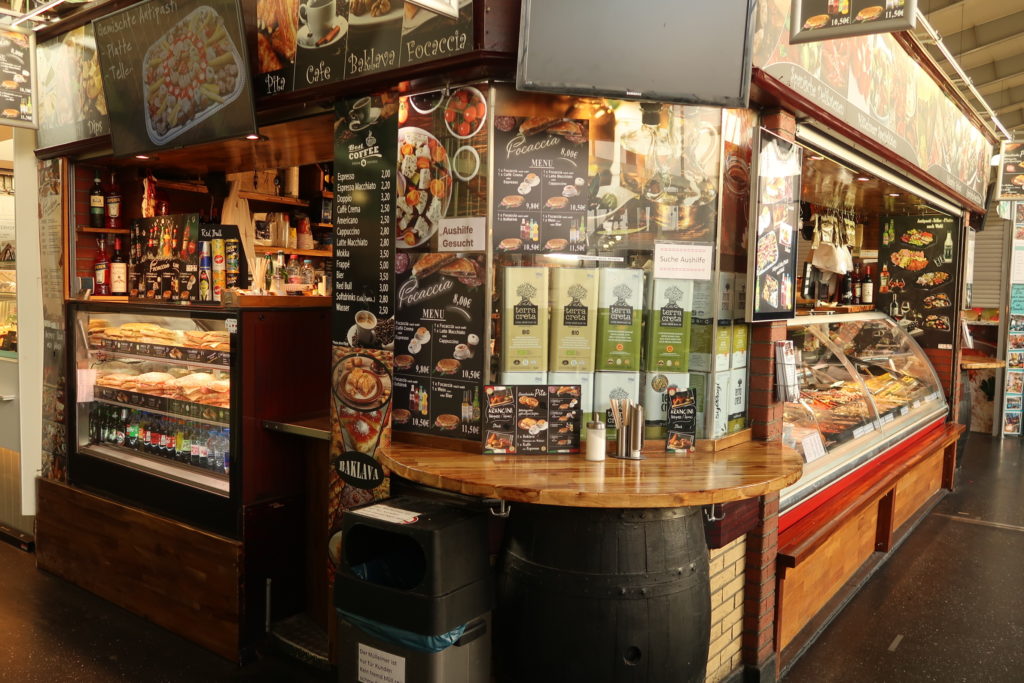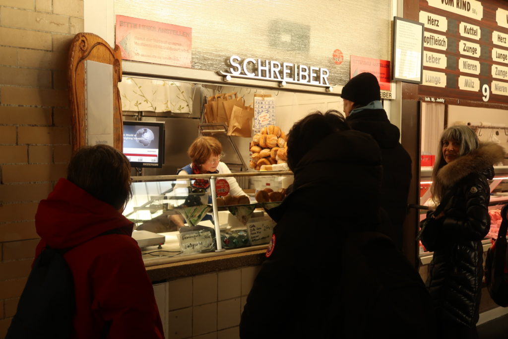街の台所 クラインマルクトハレ市場では、お目当てだった大人気のソーセージスタンドへ